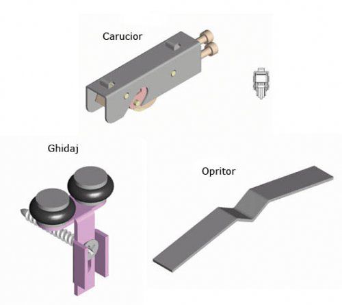 2 ghidaje + suruburi care se fixeaza pe sina de glisare superioara